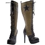 - Military green knee high PU P/F boots includes star accent, bullet shoelaces and 5" heels.